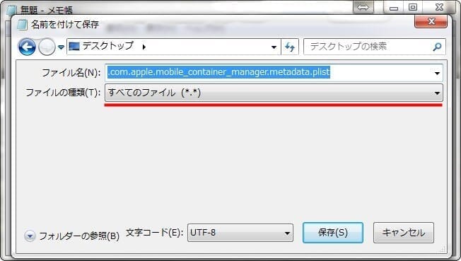 2)メモ帳で「.com.apple.mobile_container_manager.metadata.plist」という名前で空のファイルを作成します。