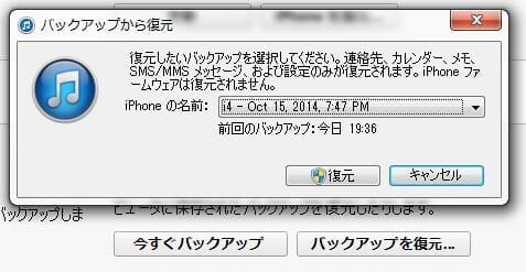 古いデータを復元する場合、「Shift(Macの場合Option)」を押しながら「バックアップを復元」で元に戻せます。