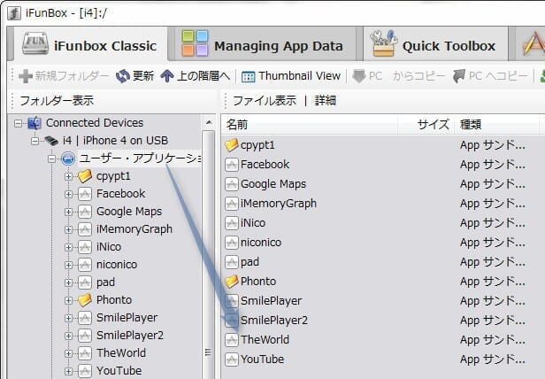 3)それを目的のアプリのとこにドラッグ&ドロップ