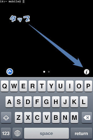 1)Mobile Terminalを立ち上げて「i」ボタンをタップ
