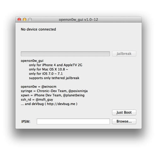 opensn0w GUI - iOS 7.0 ~ 7.1beta2 tethered Jailbreak tool only iPhone 4