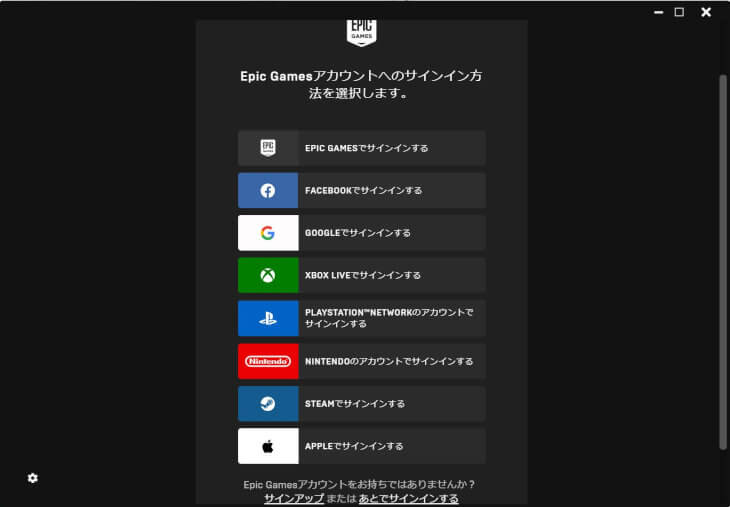アカウントがない場合、サインアップからEpic Gamesのアカウントを作成してください(他のものでも大丈夫です)