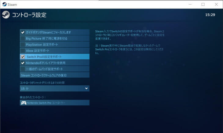 Nintendo SwitchプロコントローラーをSteamで設定する