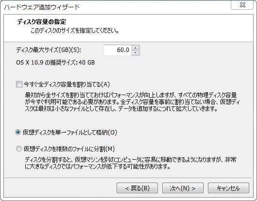5)仮想ディスクを単一ファイルとして格納(容量は任意)