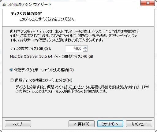 5)仮想ディスクを単一ファイルとして格納(容量は任意)