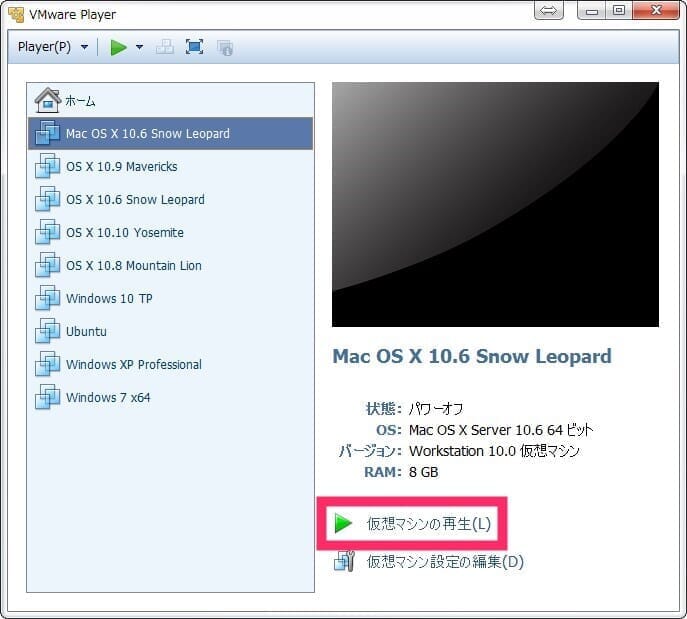 VMwareをMac OS Xに対応させる