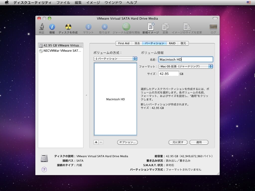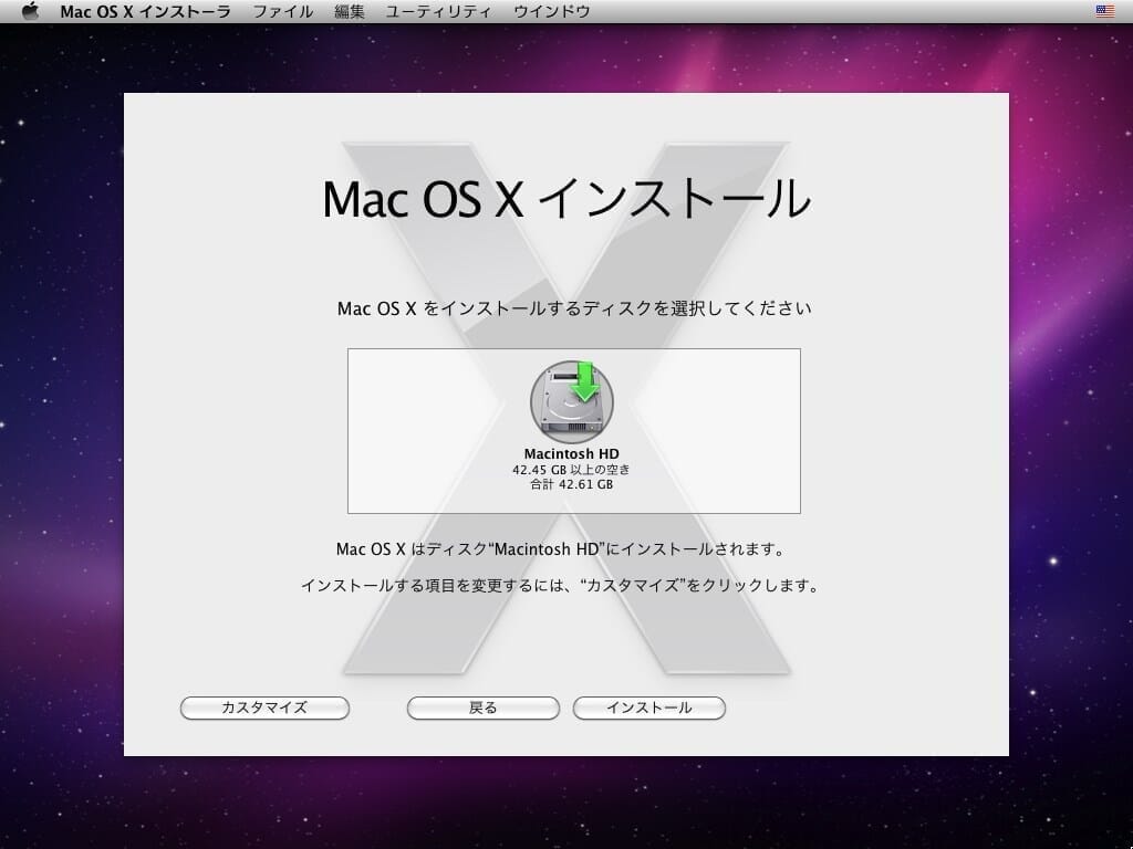Mac OS X Snow Leopardのインストール