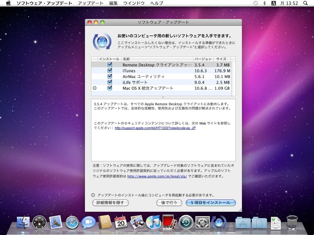 再起動後、バージョン 10.6.8になります。