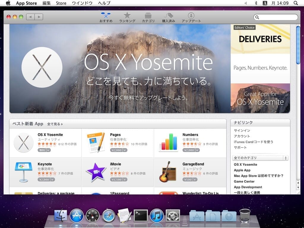サインインして「OS X Yosemite」を無料でDownloadすることが出来ます。