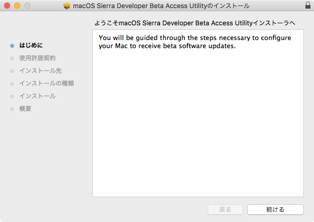 「macOSDeveloperBetaAccessUtility.pkg」を実行してインストール。