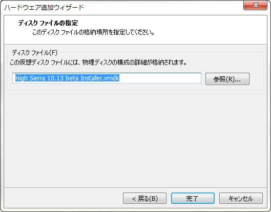 名前を「High Sierra 10.13 beta Installer.vmdk」にしておきます。