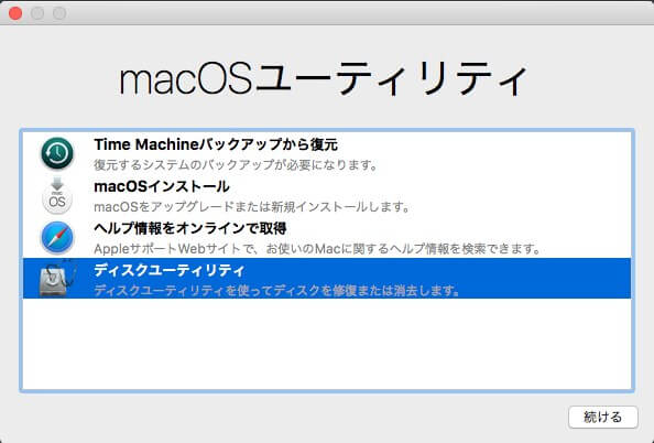 2)立ち上がったら日本語を選択し、ディスクユーティリティを開く
