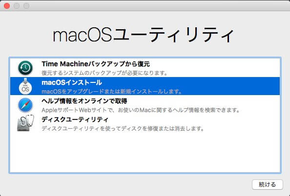 4)ディスクユーティリティを閉じ、「macOSインストール」を選択