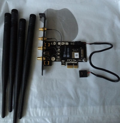 なので、「インターフェース mini PCI Express用モジュールカード to PCI express変換ボード アンテナ3本」を使って取り付け!
