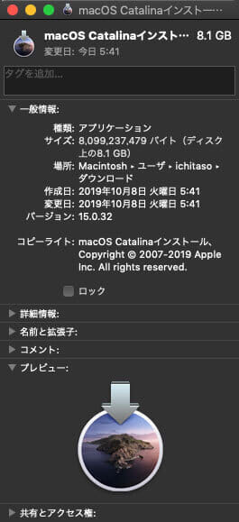 Catalinaダウンロード後
