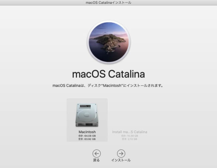 • > Mac実機上で作成したCatalinaインストールディスクを使用