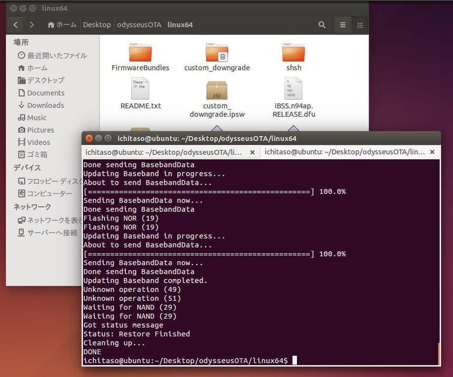 「linux64」フォルダに「iPhone4,1_6.1.3_10B329_Restore.ipsw」を入れます。