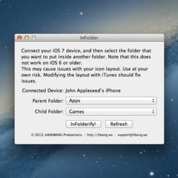 iOS7のフォルダの中にフォルダ入れるバグを利用して、Mac/Winから同様のことを簡単に行える「InFolder」を紹介します。