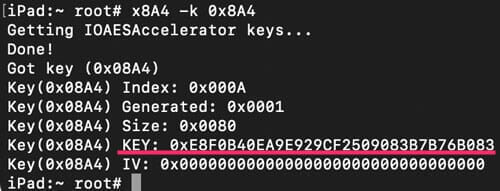 python3 aes_cryptex_nonce.py <Dumped 0x8A4 Key (32文字) > <Cryptex Seed (32文字 任意のため分かりやすく1を32文字) >