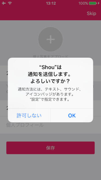 アプリを起動すると通知の許可を求められるので、OKをタップ