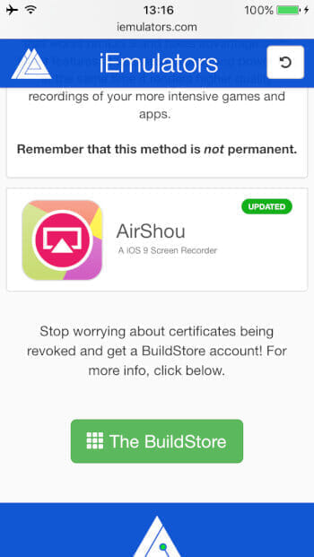 iOS 8の頃に紹介した、iPhoneの画面を録画できるアプリ「Shou」のiOS 9対応版として、「AirShou」というアプリがあります。