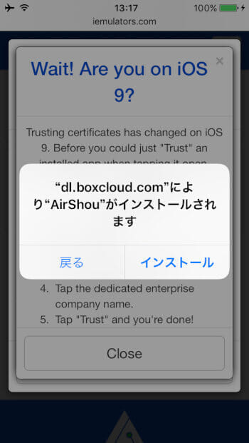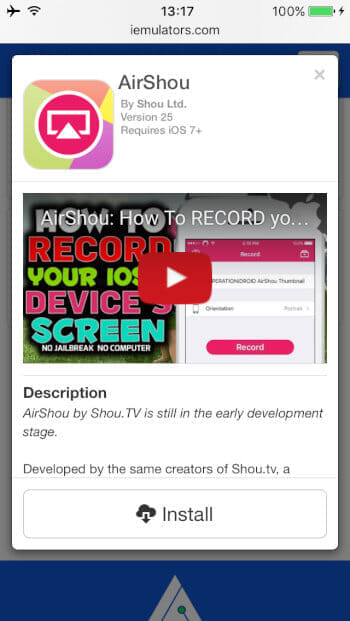 「Install AirShou」をタップ