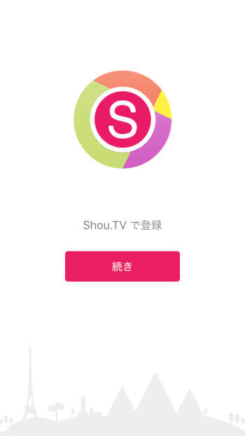 Shou.TV で登録と表示されるので、「続き」をタップ