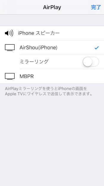 airplayをタップしてもairshouが表示されません、