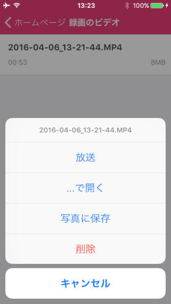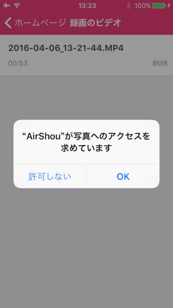 AirShouを開いて、「中止」をタップしたら録画完了です。