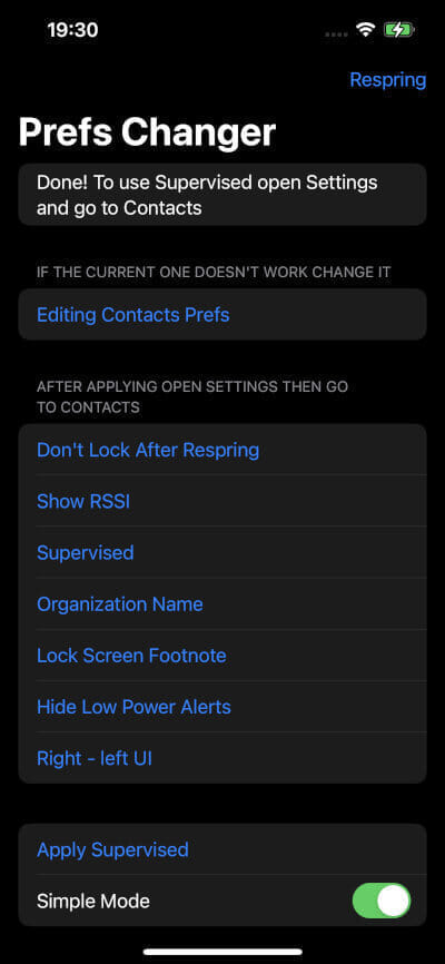 デバイスがSupervisedモードになっているので、PrefsChangerで先ほどと逆の方法でオフにすることが出来ます。