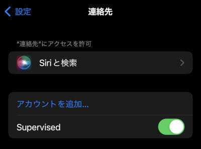 成功すると設定アプリの連絡先の下に「Supervised」のオン・オフスイッチが表示されるのでオンにします。