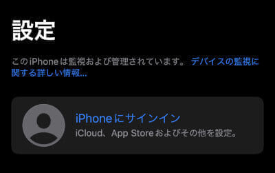 一度設定アプリをAppSwitcherから完全に終了させて、再度設定アプリを開くと「このiPhoneは監視および管理されています」という表示が出てきます。これで「Supervised Mode」になっていることが確認できます。