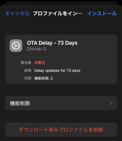 プロファイルをインストールすることでOTAアップデートを無効にすることが出来ます。