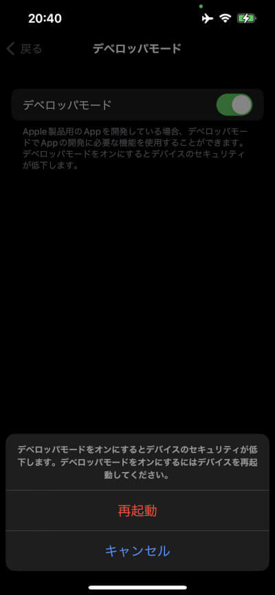 iOS 16以降のSideloadしたアプリは「デベロッパーモード」を有効にする必要があります。