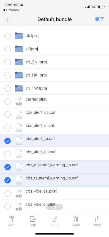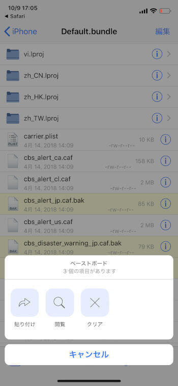 4)「cbs_alert_jp」を長押しすると「書類の名称変更」が出来るので名前をクリップボードにコピー→元の画面に戻って「cbs_alert_jp」をタップ