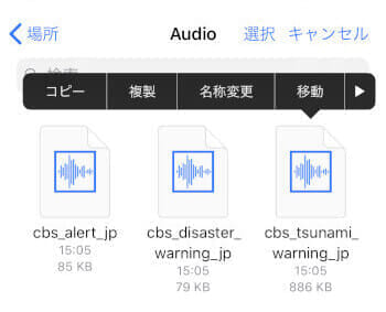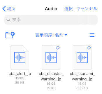 「cbs_alert_jp.caf」、「cbs_disaster_warning_jp.caf」、「cbs_tsunami_warning_jp.caf」これらが日本の緊急速報に使われている音声ファイルになります。