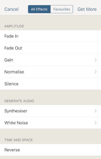 1)波形の部分をタップしてすべて選択した状態にする→選択部分をタップして「More」をタップ