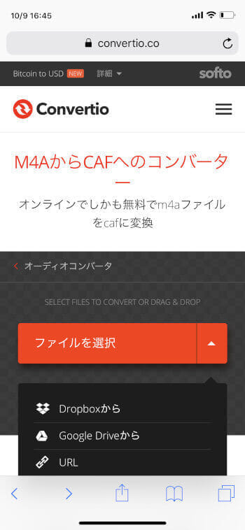 1)「DropBoxから」を選択して、先程作成したm4aファイルをアップロード