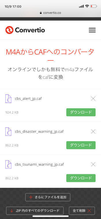 これで「cbs_alert_jp.m4a」ファイルが保存されます。