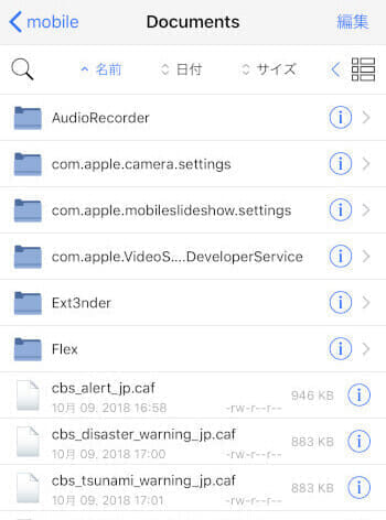 5)「/var/mobile/Documents」に編集したcafファイルがダウンロードされます。