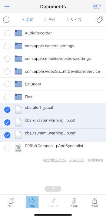 2)「/var/mobile/Documents」の編集したcafファイルを選択して「移動」