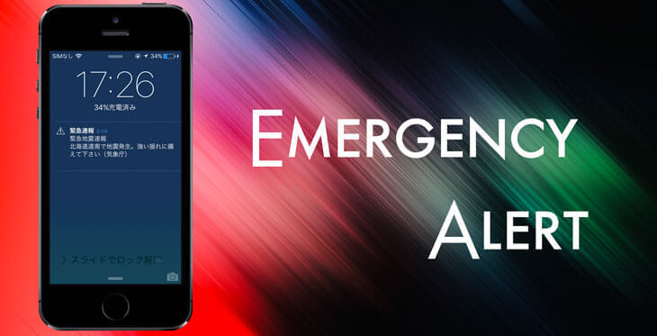 iPhoneでは震度4以上の地震などで緊急速報メールが受信され、最大音量とともに警告アラートが鳴ります。