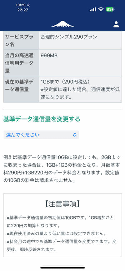 選択したのは特に格安な「合理的シンプル290プラン」(月額290円)