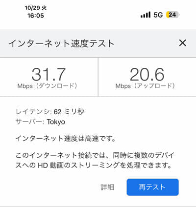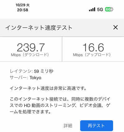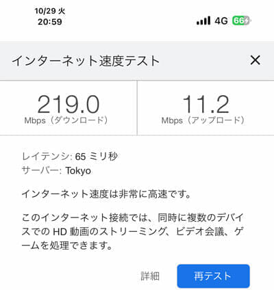 札幌市の外れでの結果なので、東京都心など混み合ったところでは遅くなるかもしれませんが個人的には満足しています!