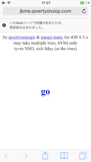 「このWebページで問題が起きたため、再度読み込まれました。」と表示されたときは失敗なので、再度「go」をタップしてください。