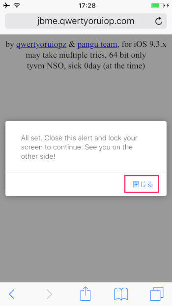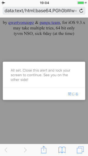 6.アラートの「閉じる」をタップして、スリープボタンで画面をロックします。