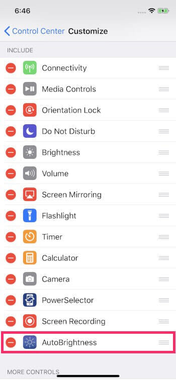 通常ですと、設定→一般→アクセサビリティ→ディスプレイ調整→明るさの自動調節まで画面を開かなくてはいけませんが、コントロールセンターに設定しておくと簡単にON/OFFすることができるようになります。