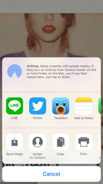 このようにLINEやTwitterなどアクティビティメニューに対応したアプリでシェアできます。