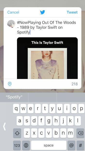 音楽を再生中にボタンを押して、Twitterでつぶやくとこんな感じですぐにシェアできます。