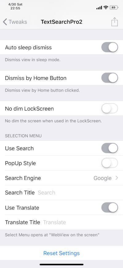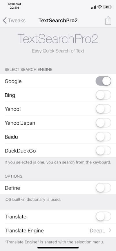 TextSearchPro2 - 選択メニューやCCからすぐに検索や翻訳ができるTweak